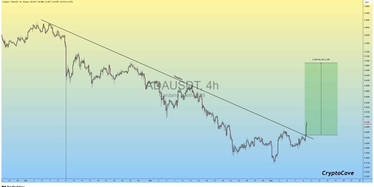 The move came shortly after crypto analyst Captain Faibik reported a confirmed breakout on X, noting, “$ADA #Cardano Major trendline Breakout is Confirmed.. +10% Profit so far in a few hours..”