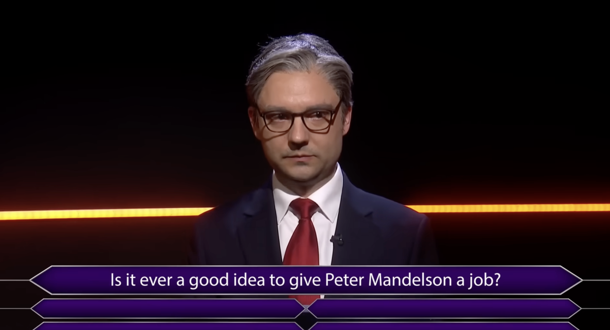 The show’s latest cold open above is a parody of the game show Who Wants to be a Millionaire?, which sees a nervous Starmer (played by George Fouracres) struggling to answer the question: “Is it ever a good idea to give Peter Mandelson a job?” (The real Starmer has come under increasing scrutiny for giving the U.S. ambassador role to Mandelson, who is currently under criminal investigation over his ties to Jeffrey Epstein).